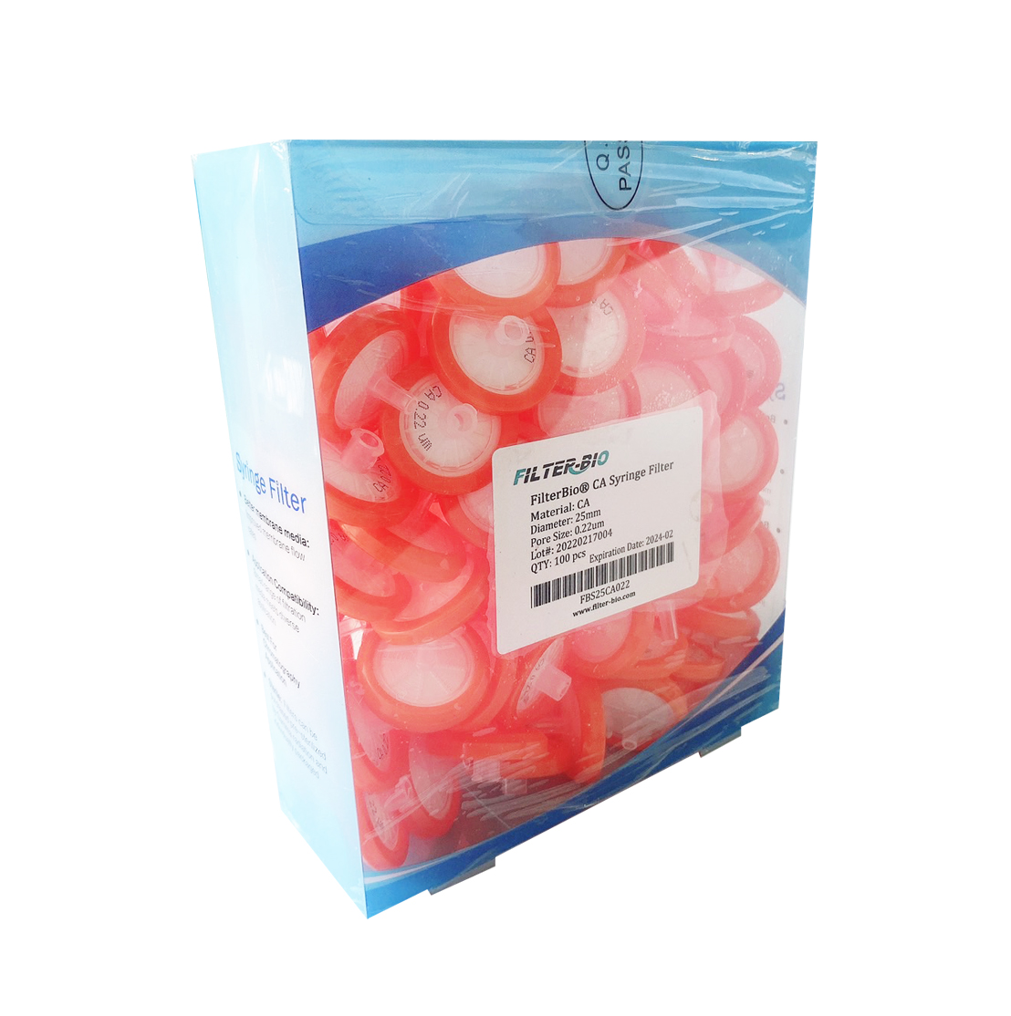 ฟิลเตอร์ซิลินเดอร์ชนิดเซลลูโลสอะซิเตท (Cellulose Acetate – CA) ยี่ห้อ Filter BIO เป็นฟิลเตอร์ที่ออกแบบมาเพื่อการกรองตัวอย่างที่มีน้ำเป็นส่วนประกอบหลัก วัสดุเซลลูโลสอะซิเตทมีคุณสมบัติเป็นไฮโดรฟิลิก (hydrophilic) และมีการยึดติดกับโปรตีนต่ำ ทำให้เหมาะสำหรับการกรองสารละลายที่มีน้ำเป็นส่วนประกอบหลัก